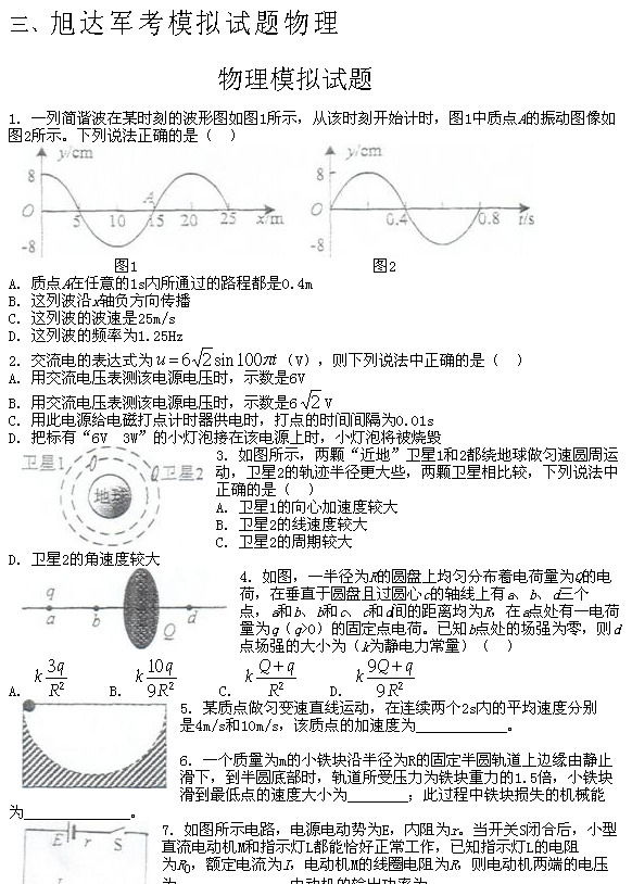 旭达军考模拟试题物理